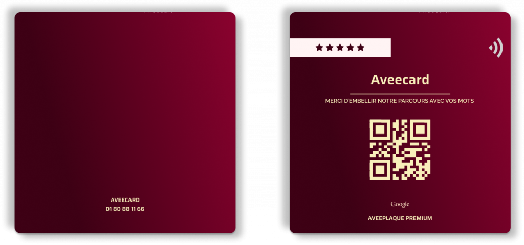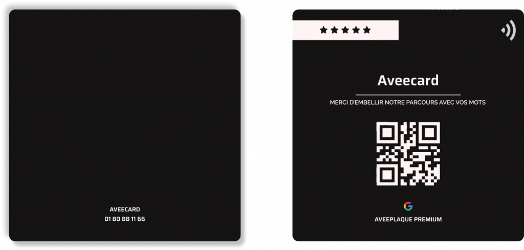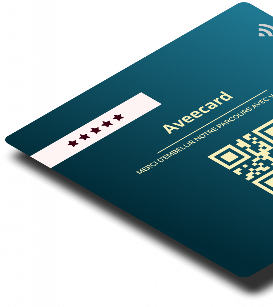 C’est pour simplifier ce moment que la plaque NFC Aveecard a été pensée. En un simple geste, vos clients accèdent à l’espace d’avis en toute fluidité, sans téléchargement ni friction. Élégante et intuitive, elle conjugue technologie invisible et simplicité d’usage, transformant chaque interaction en opportunité de renforcer votre réputation.